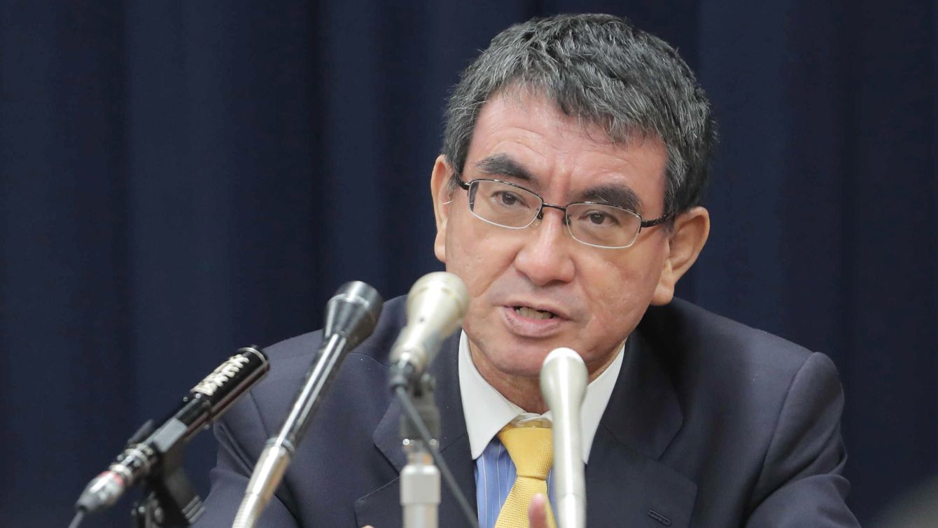 グループインタビューに答える河野太郎行政改革担当相=2020年10月1日、東京都千代田区