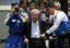 東京・池袋で暴走した車にはねられ母子が死亡した事故現場で、実況見分に立ち会う旧通産省工業技術院の飯塚幸三元院長(中央)=2019年6月13日、東京都豊島区