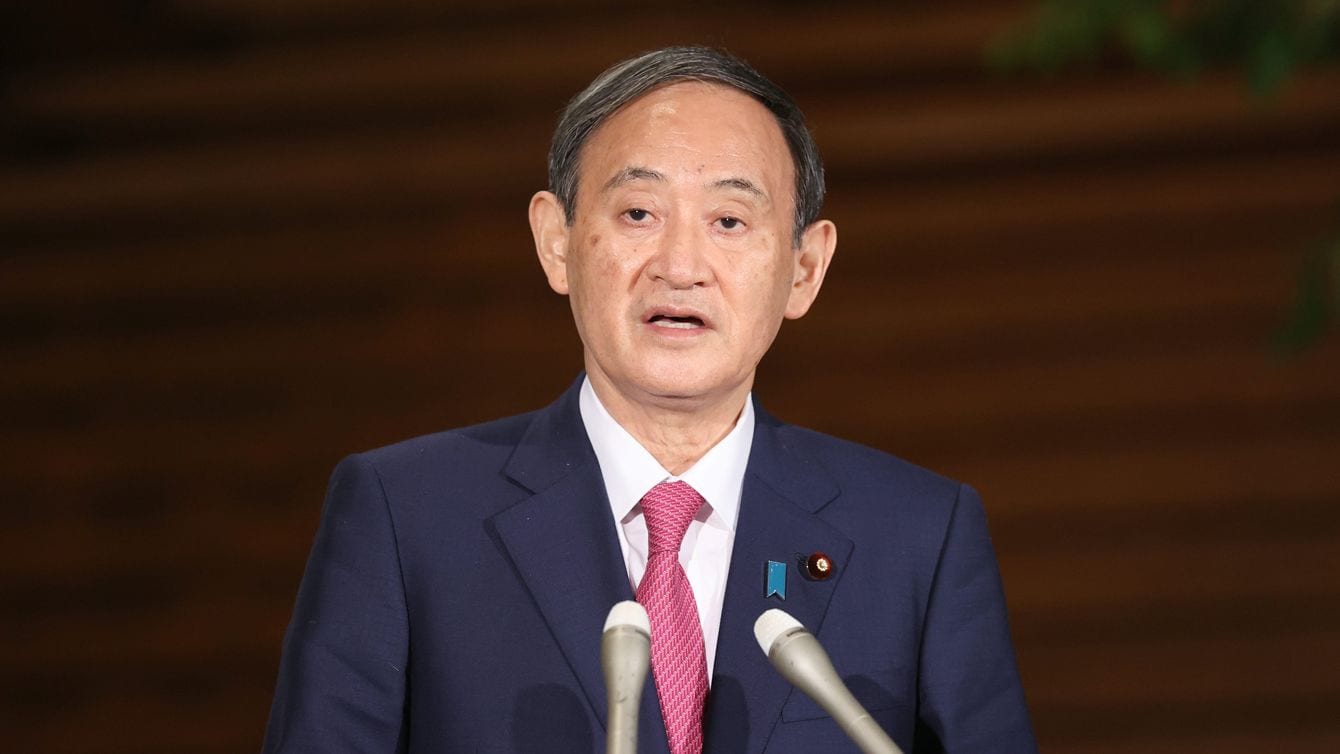 記者団の取材に応じる菅義偉首相=2020年10月16日午後、首相官邸
