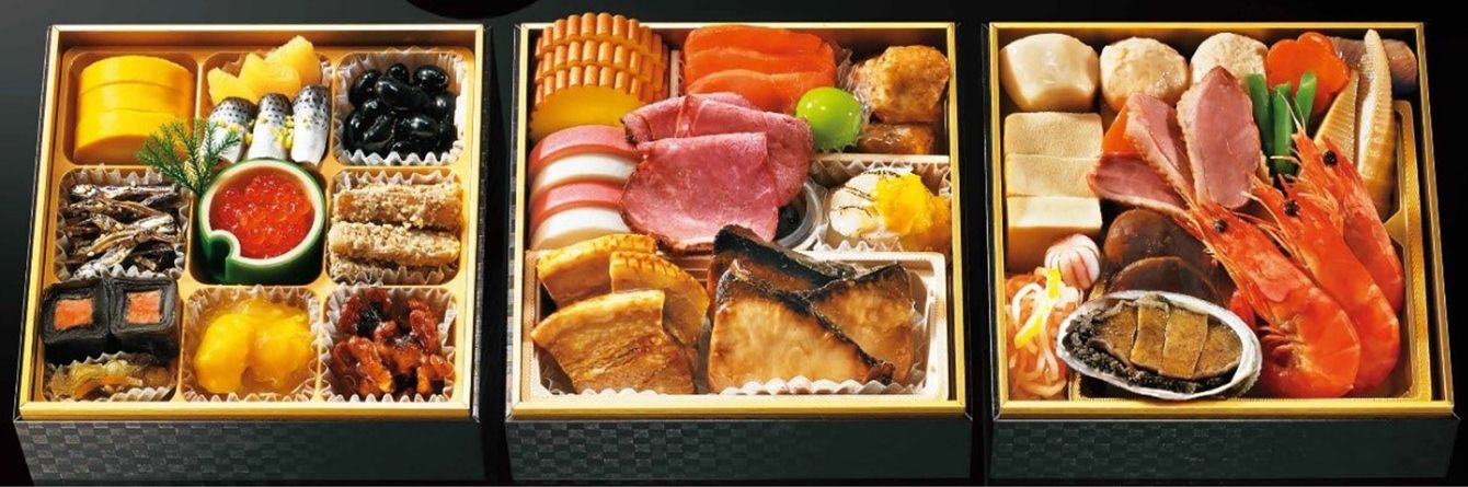 厳選食材を使い「人気具材のブリの照り焼きのサイズをより大きくした」(安藤さん)など、一品一品グレードアップした「寿おせち三段重」。店頭受け取りのほか宅配もできる