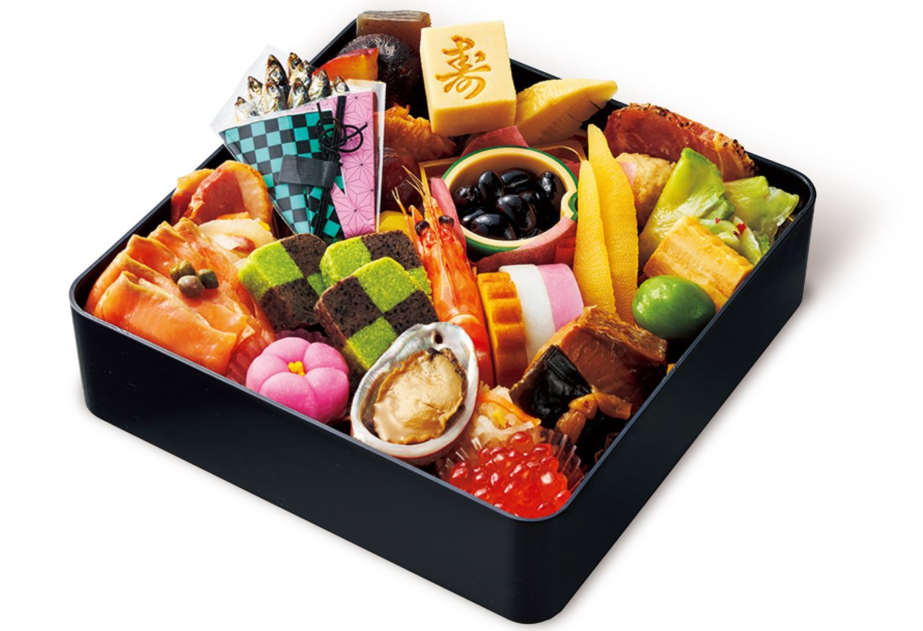 オリジナルお重でレア感たっぷりの「『鬼滅の刃』おせち一段重」(一部取り扱いのない店舗あり)。年始早々、元気が出そう(©吾峠呼世晴/集英社・アニプレックス・ufotable ©Lawson, Inc.)
