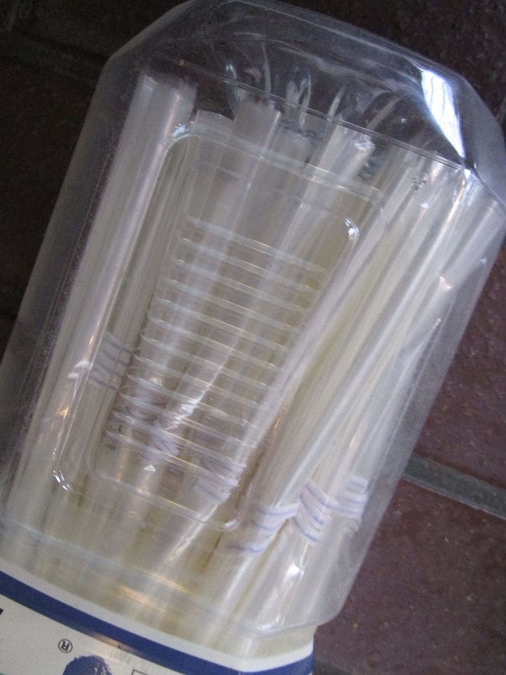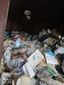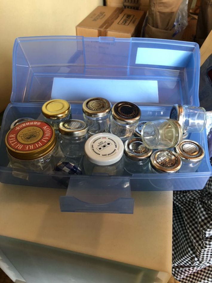 写真H:台所には豆腐パックがきれいに洗われて何十個と積み重ねてあった。