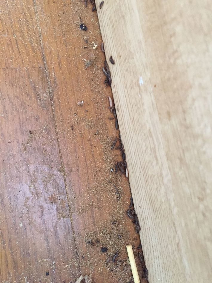 男性がいる居住空間には2センチ程度のミミズのような虫が無数にいた。