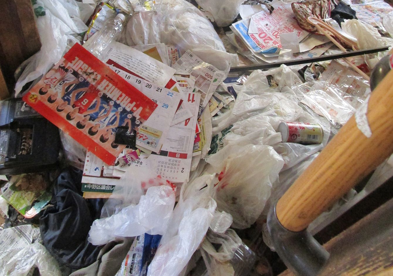 1階のゴミ部屋は膝元あたりまでゴミがたまっていた。