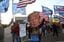「ストップ・ザ・スティール」の抗議行動に賛同者が集まる中、ドナルド・トランプ米大統領の頭の切り抜きを手にする女性がいる=2020年11月9日、アリゾナ州、フェニックス