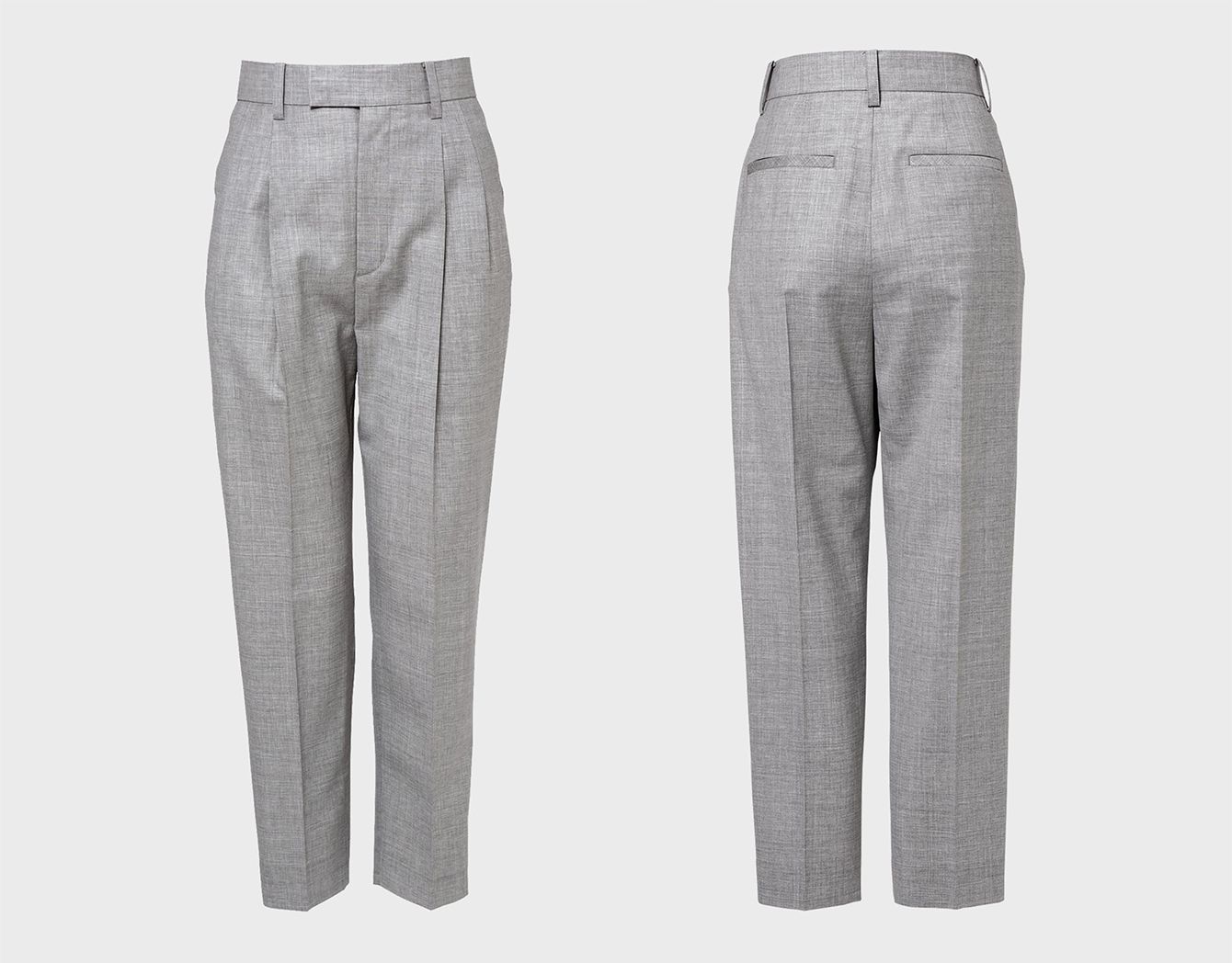 ブランドの定番人気であるテーパードパンツは、ウール100%でありながらさらりとしたライトな着心地と上品な光沢感が魅力。00~2まで4サイズ展開なので、自分に合うサイズ感が見つけやすい。パンツ2万1000円/スタニングルアー(スタニングルアー 新宿店)