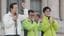 公明党と日本維新の会の「大阪都構想」合同街頭演説で発言する(左から)公明党の山口那津男代表と松井一郎大阪市長、吉村洋文大阪府知事=2020年10月18日、大阪市中央区