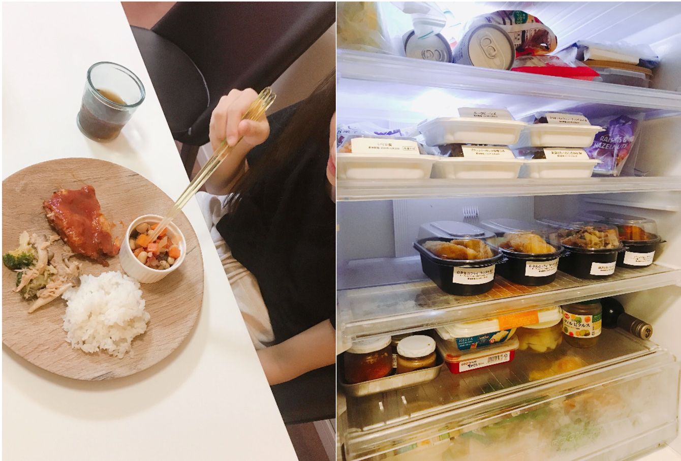届いたばかりの惣菜が並ぶ、木村さん宅の冷蔵庫。ワンプレートに盛り付けられた惣菜にご飯も盛って食べる長女。