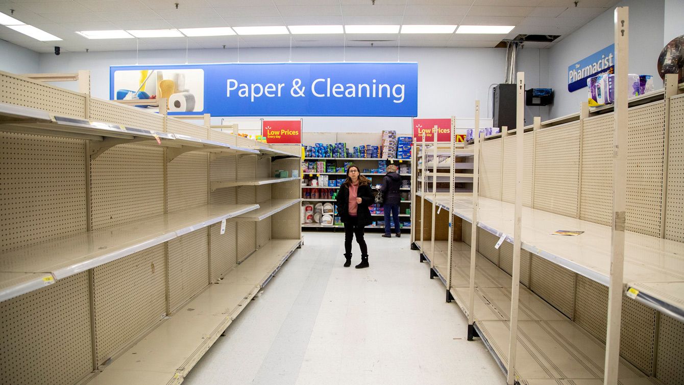 11月13日、英国が再びロックダウンに入るとのうわさが最初に広まると、近所のスーパーマーケットの棚からはまた、パンやトイレットペーパーが姿を消し、リアンヌ・バーンズさんは絶望感を抱いた。ニューヨークのスーパーで2020年8月撮影