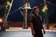 決死の空中大車輪「ホイール・オブ・デス”(Wheel of Death)」。高速で回転する巨大ホイールの内外でパフォーマーが飛び回る。
