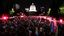 安全保障関連法案に反対し、国会前で抗議するデモの参加者=2015年9月14日夜、東京・永田町