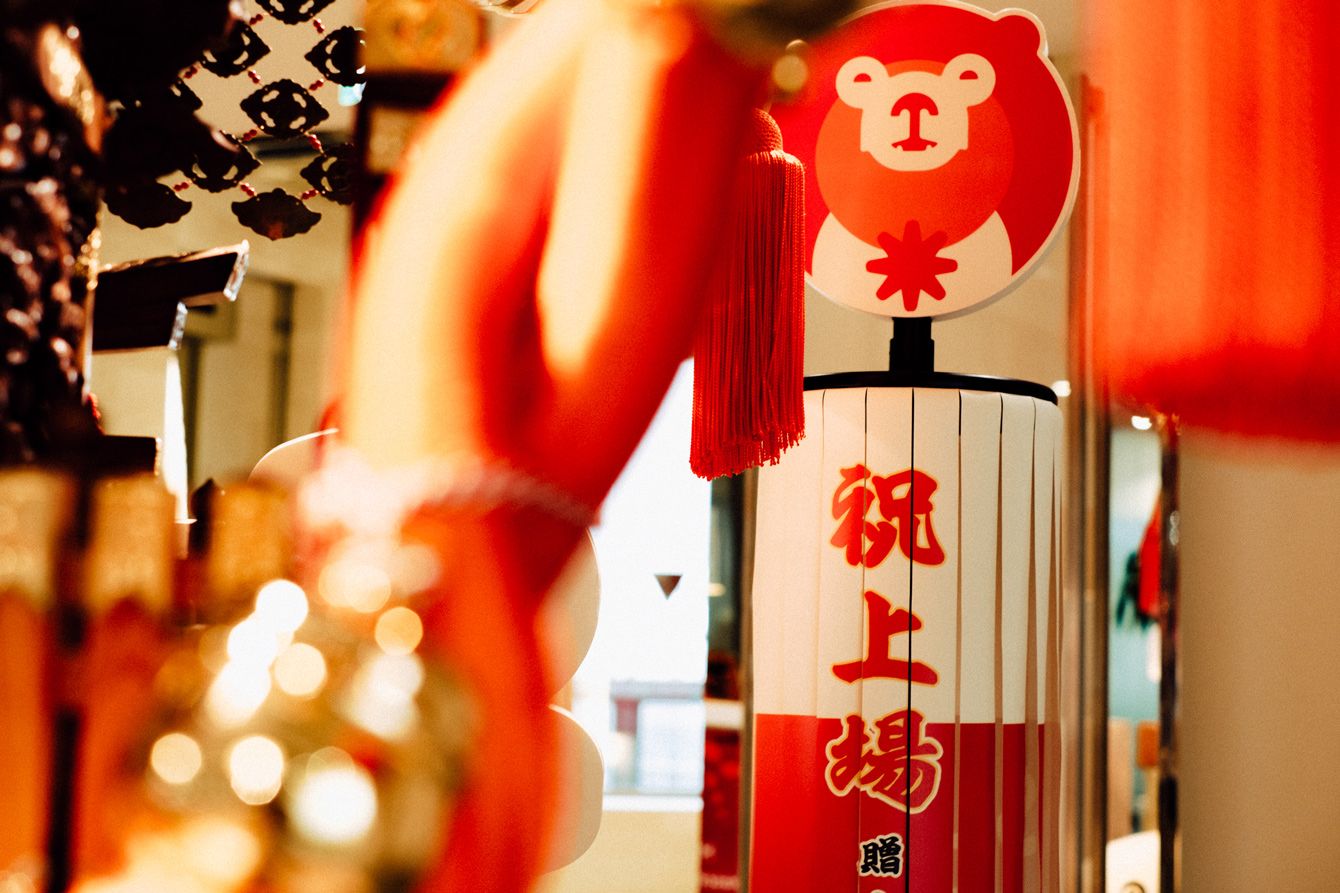 サンアスタリスクは2020年7月31日、東証マザーズに上場。オフィスのエントランスには「祝上場」の文字を引っ下げた「サンベアー」の姿も