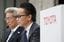 記者からの質問に答えるトヨタ自動車の友山茂樹副社長(右)=2019年2月6日、東京都文京区