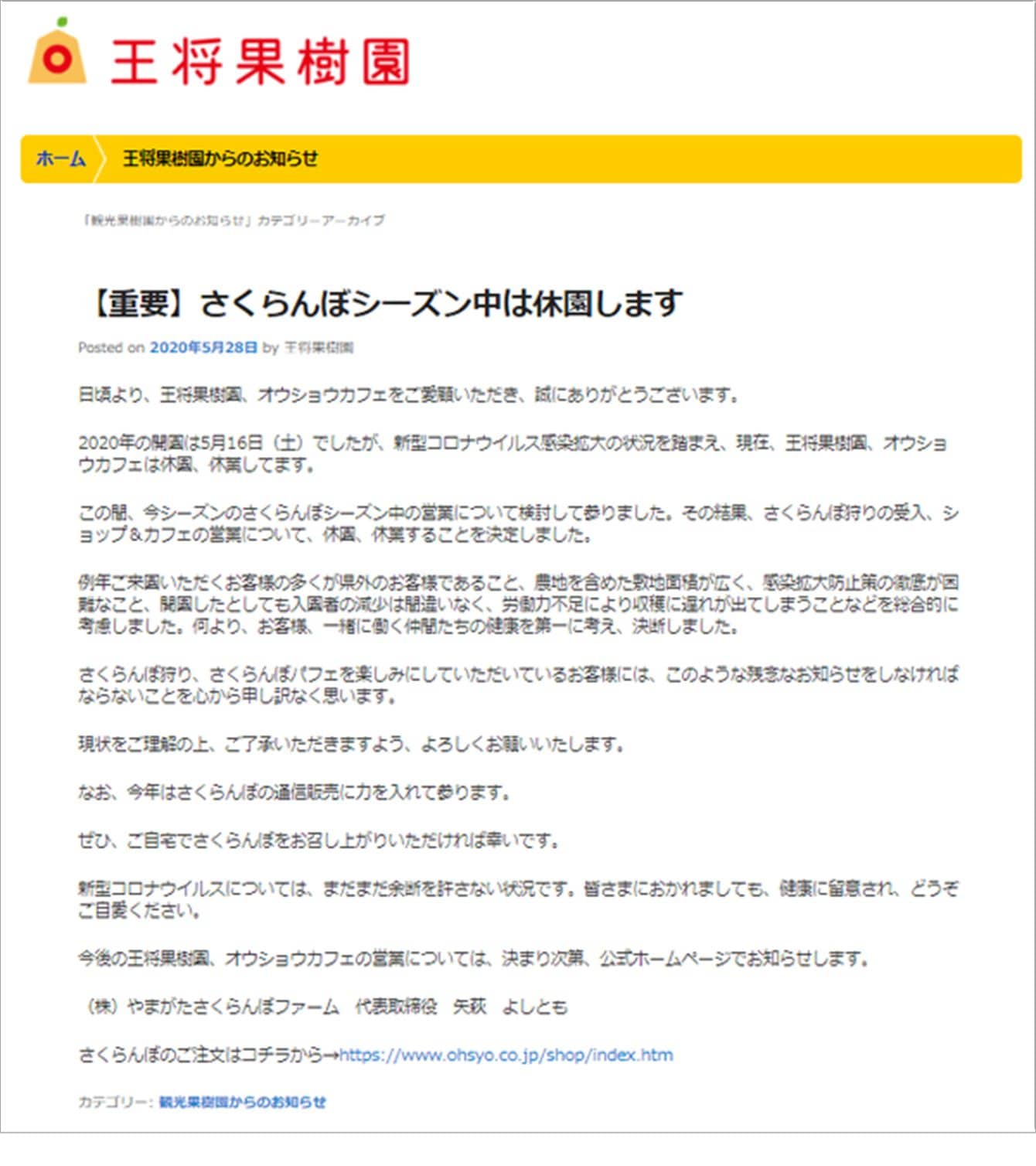日々の状況観察と素早い決断が観光果樹園休園の危機を救った(王将果樹園HPより)