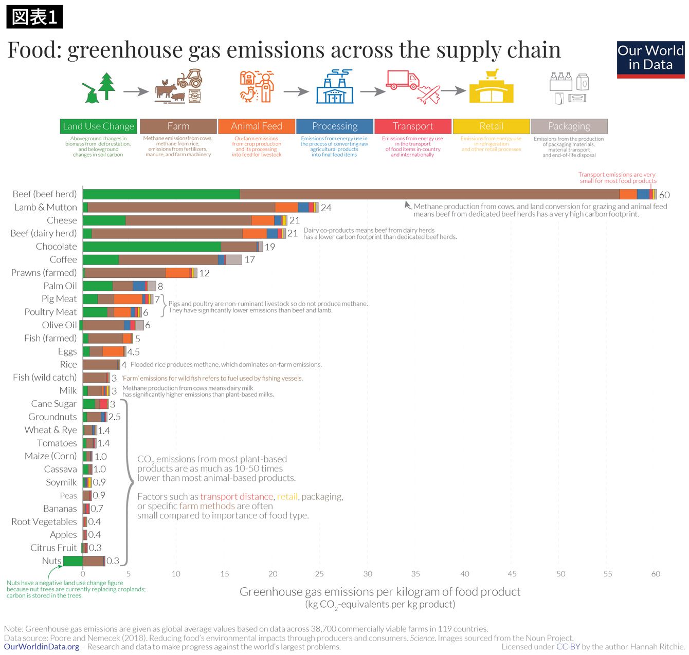 食品の生産工程で排出される温室効果ガスの総量(出所: