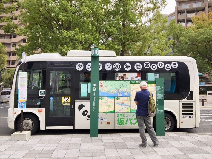 中国への返還が決まった神戸市立王子動物園のパンダ「タンタン」に感謝の意を表する坂バス。