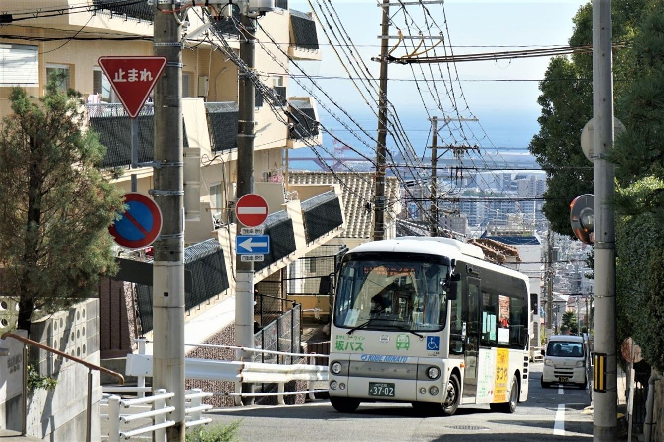 摩耶ケーブル下に向かって上る坂バス