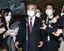菅義偉首相との会談後、取材に応じる中国の王毅国務委員兼外相(中央)=2020年11月25日午後、首相官邸