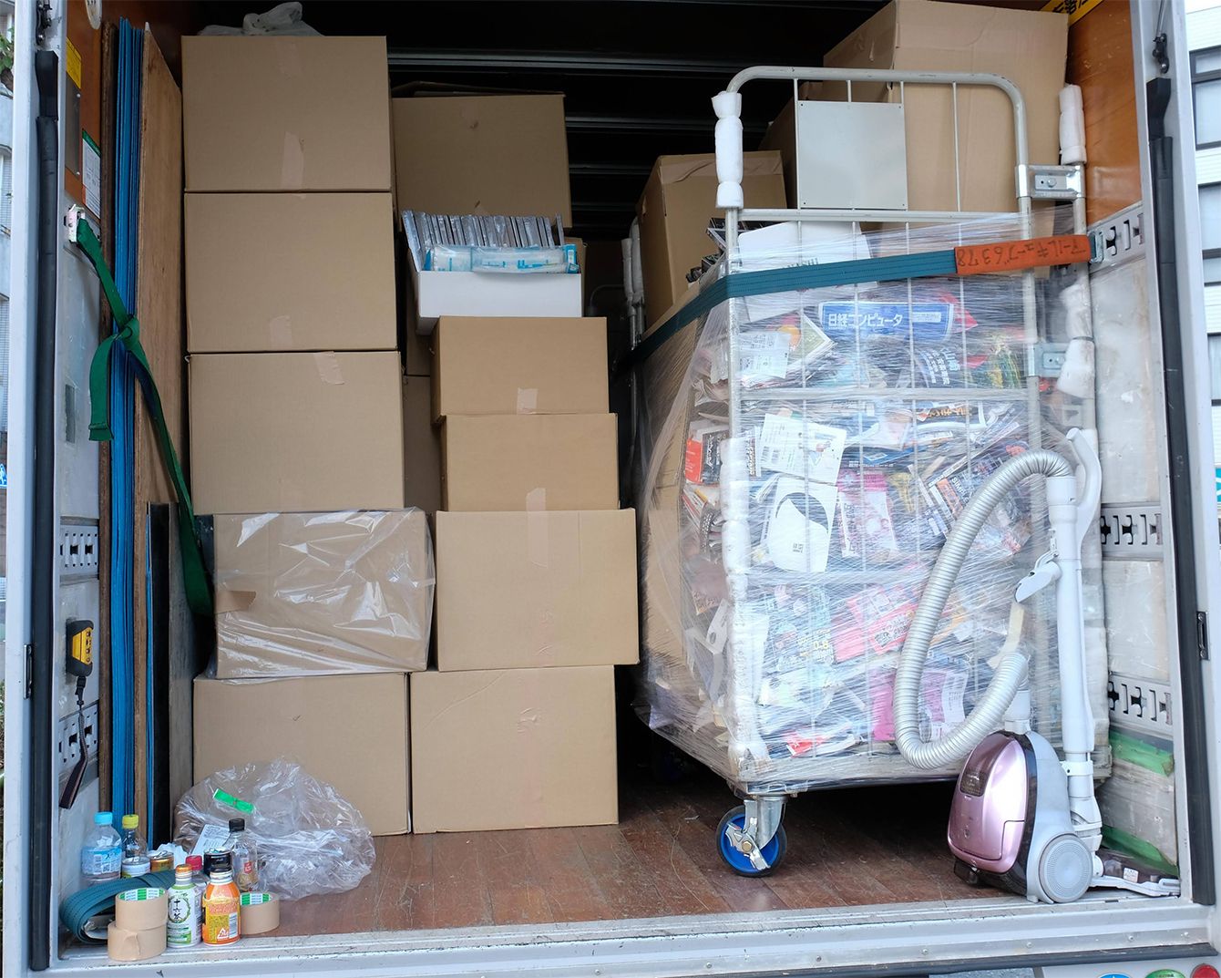 片付けた不用品は段ボールに仕分け・梱包し、その後一廃・産廃業者に処理を依頼する。