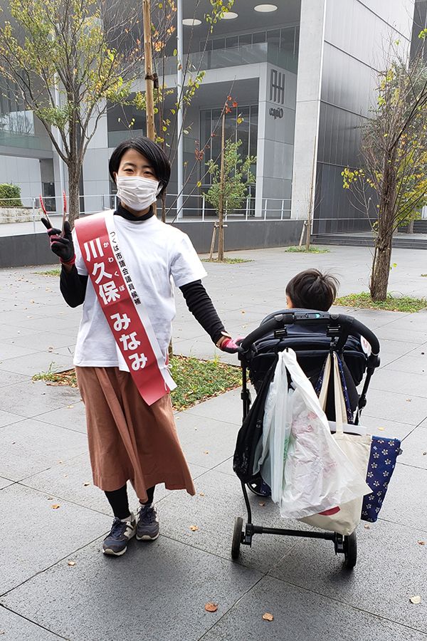 選挙活動中の川久保さん(写真提供=本人)