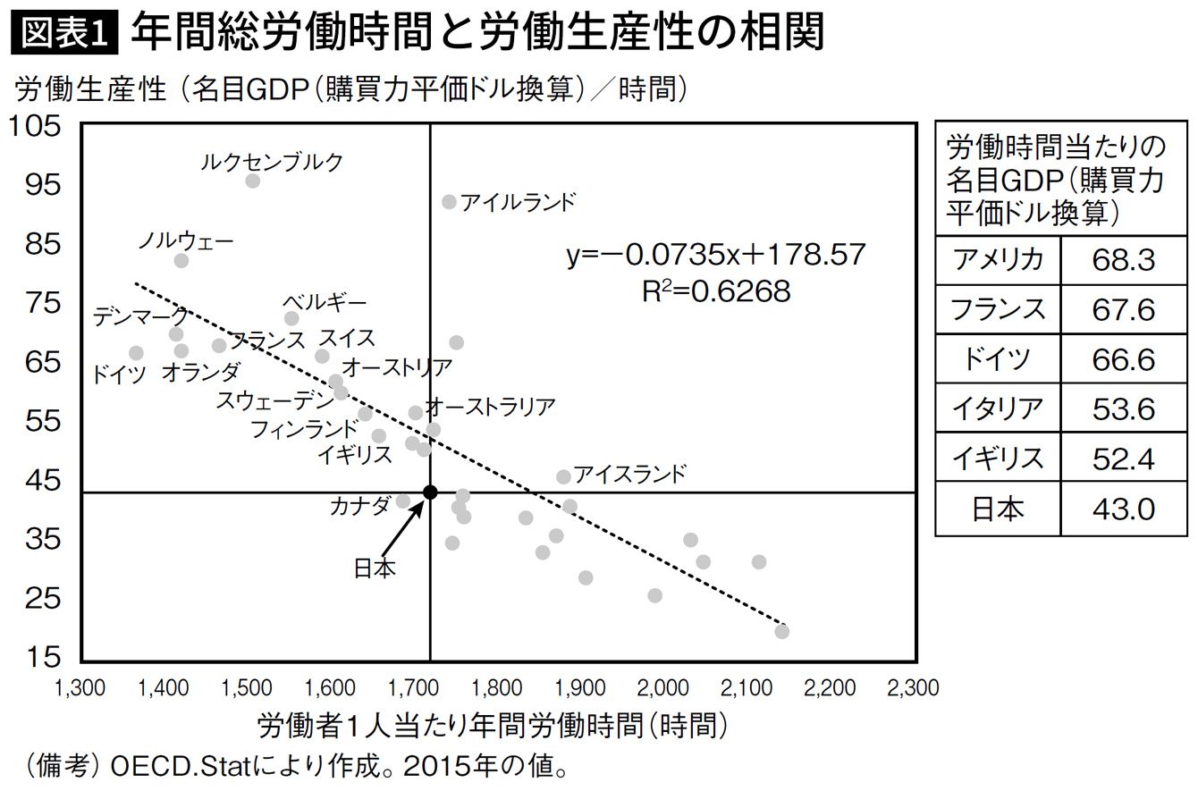 出典:神ノ田昌博「労働時間と労働生産性」. 独立行政法人労働者健康安全機構「産業保健21」2018年10月 94号より