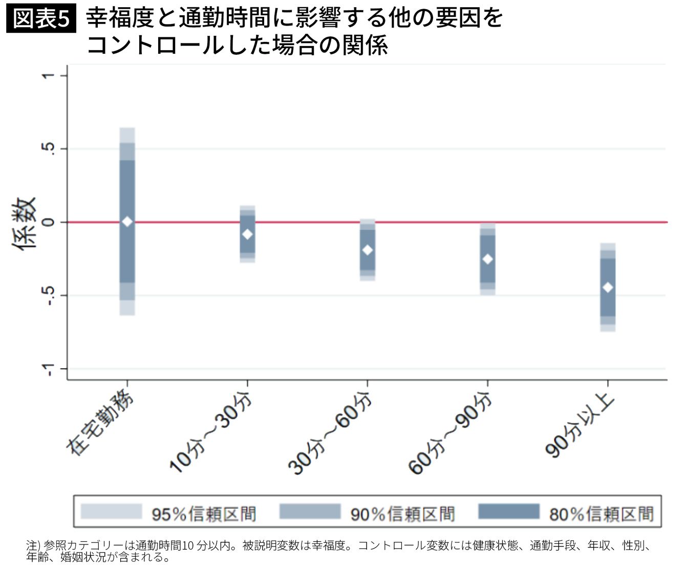 出典:岩﨑敬子「通勤時間と幸福度の関係―在宅勤務拡大で幸福度は高まるか?―」 ニッセイ基礎研究所2020年7月「基礎研レポート」より