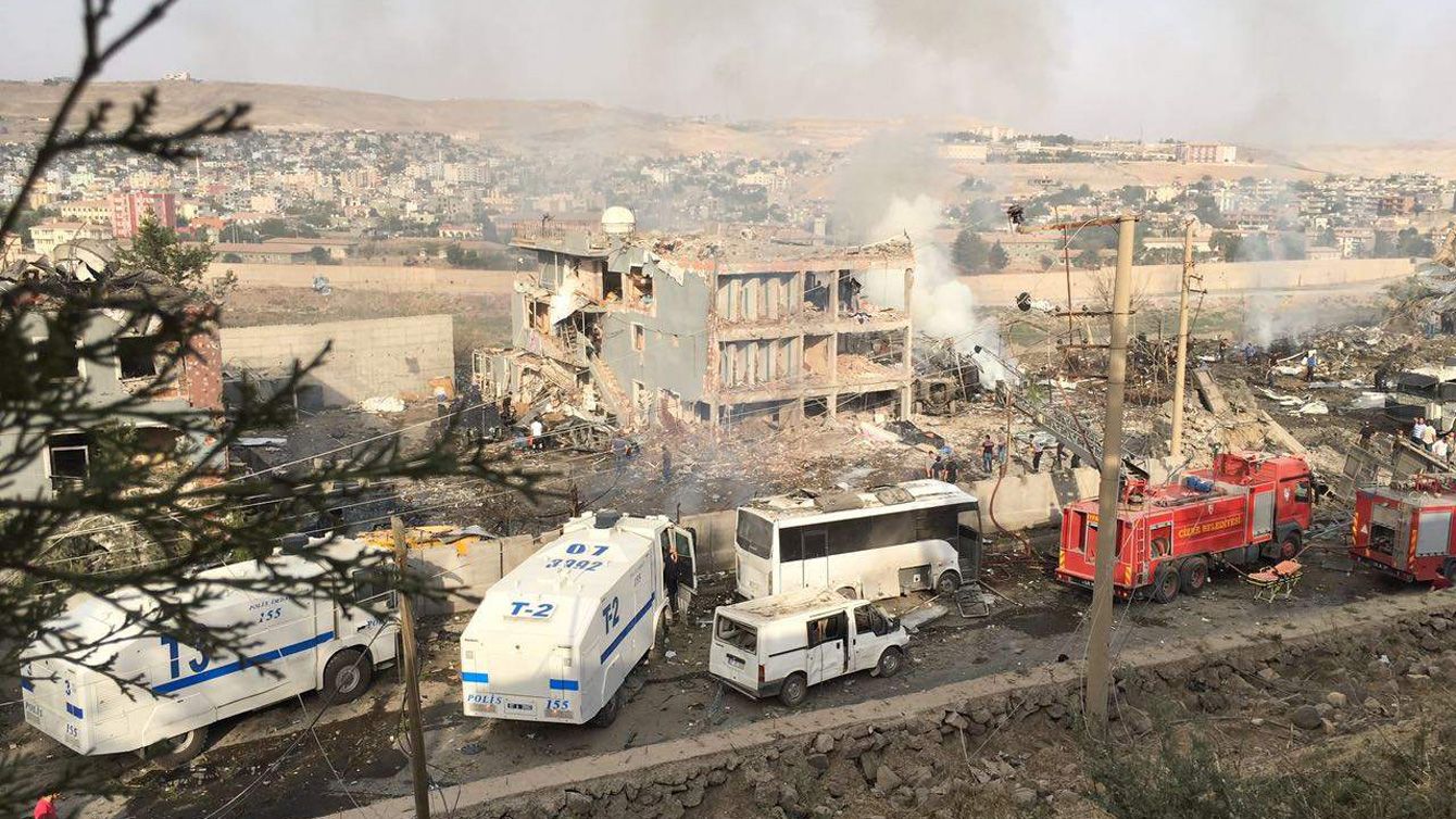 2016年8月26日、トルコ南東部シュルナク県ジズレで、自動車爆弾により破壊された警察庁舎(トルコ)