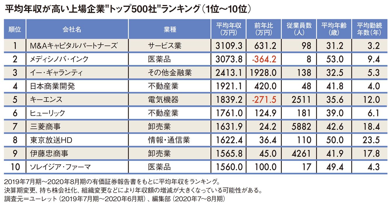 「1位は3000万円超」平均年収が高いトップ500社ランキング2020