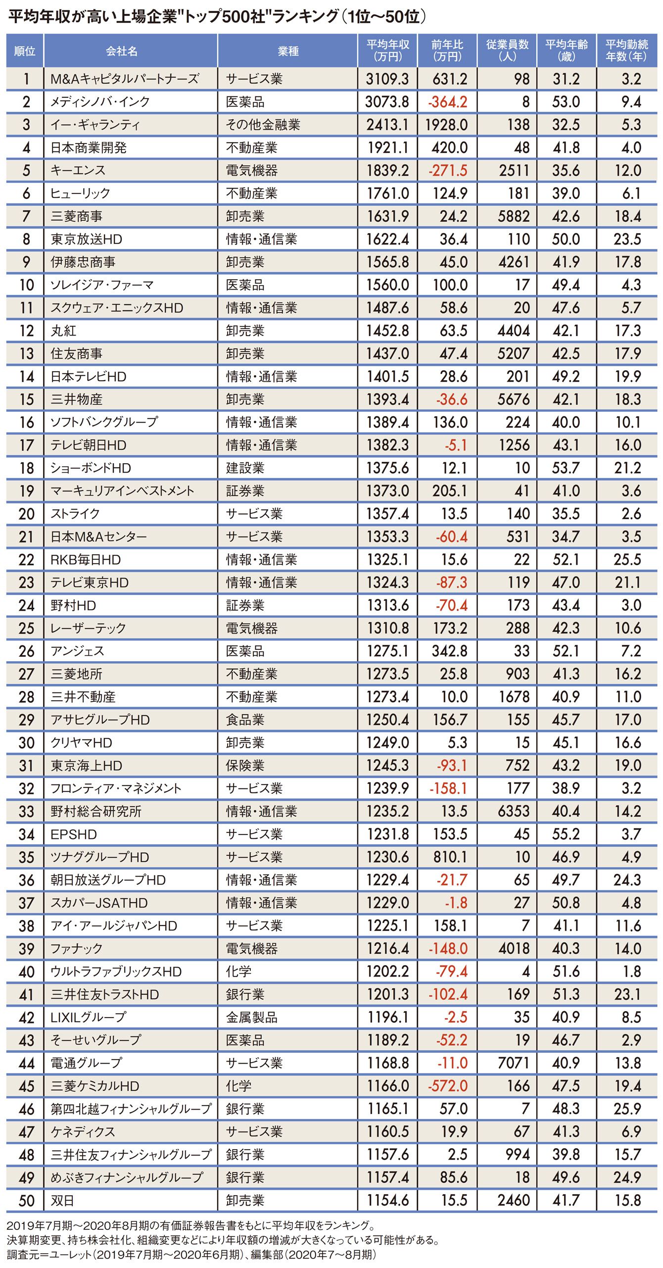 「1位は3000万円超」平均年収が高いトップ500社ランキング2020