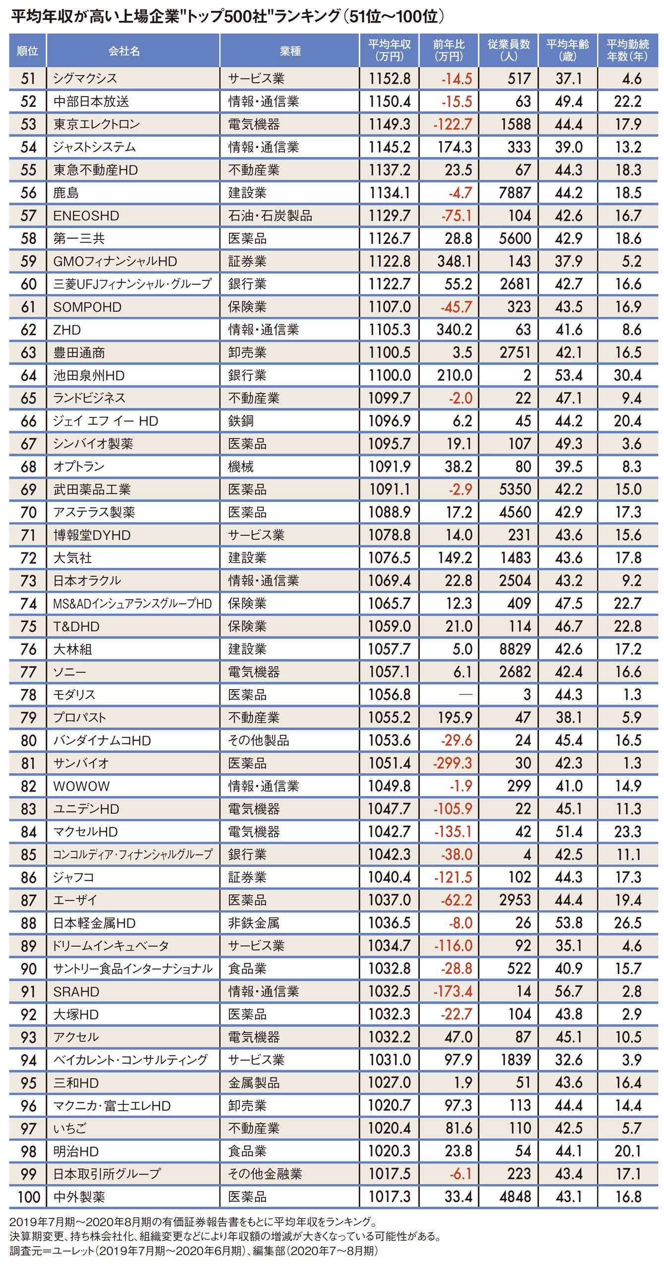 「1位は3000万円超」平均年収が高いトップ500社ランキング2020
