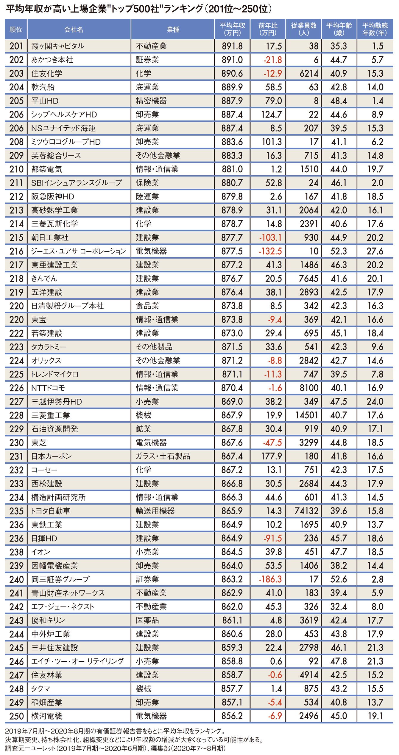 「1位は3000万円超」平均年収が高いトップ500社ランキング2020