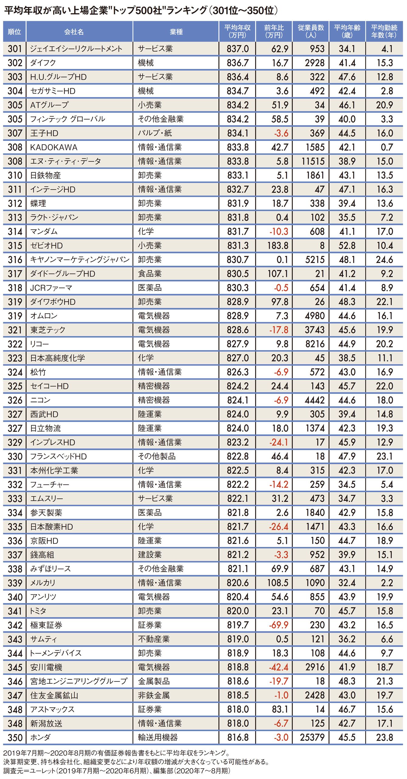 「1位は3000万円超」平均年収が高いトップ500社ランキング2020