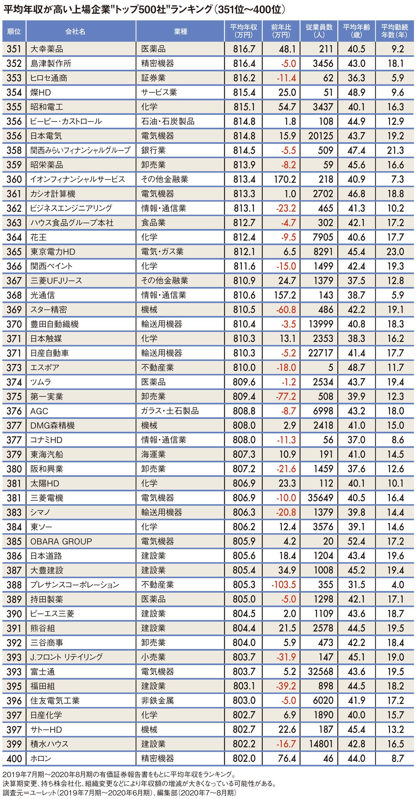 「1位は3000万円超」平均年収が高いトップ500社ランキング2020