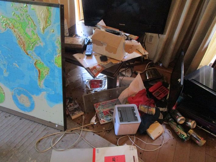 奥に見えるのが「特殊清掃」でビニール袋で密封された畳。近づくとおびただしいウジと卵が見えた。