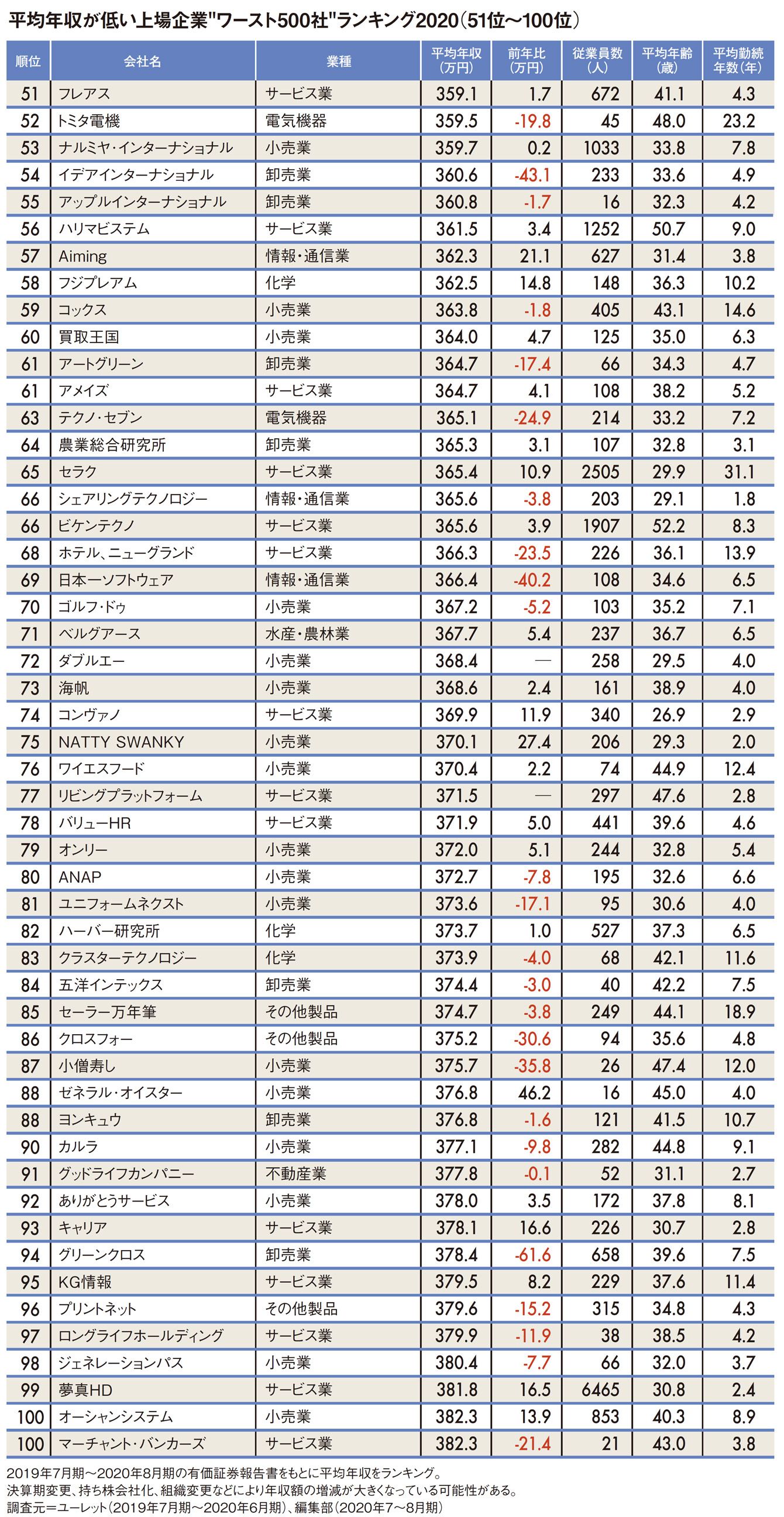「1位はメガネ小売り」平均年収が低いワースト500社ランキング2020