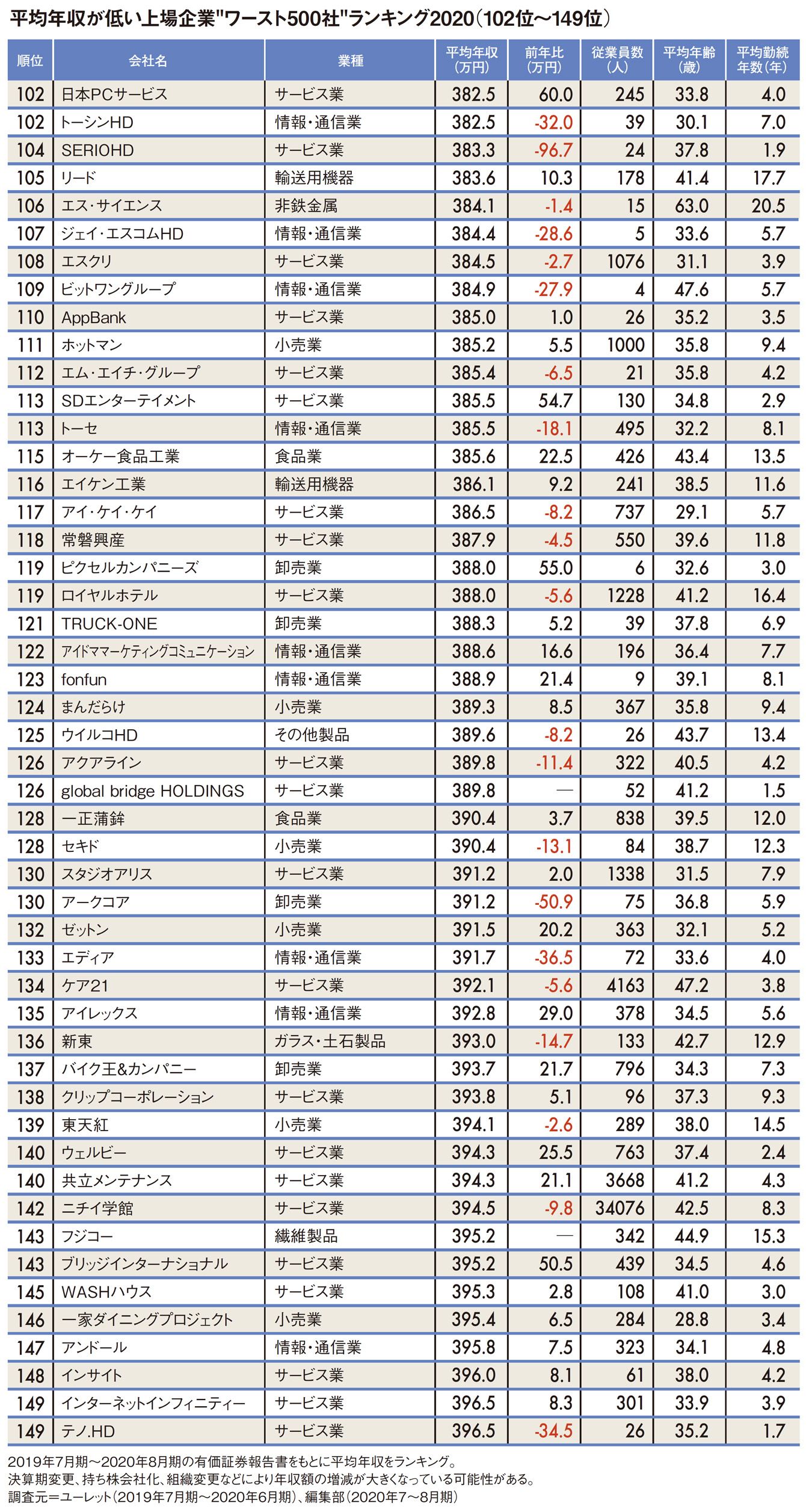 「1位はメガネ小売り」平均年収が低いワースト500社ランキング2020