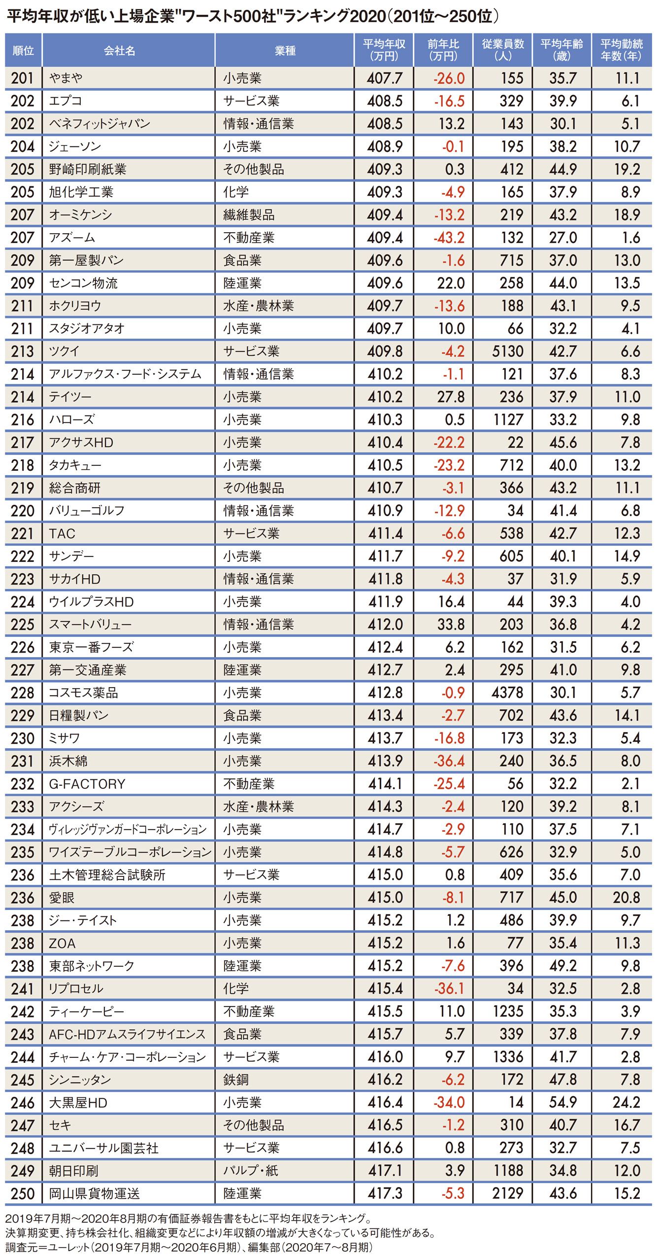 「1位はメガネ小売り」平均年収が低いワースト500社ランキング2020