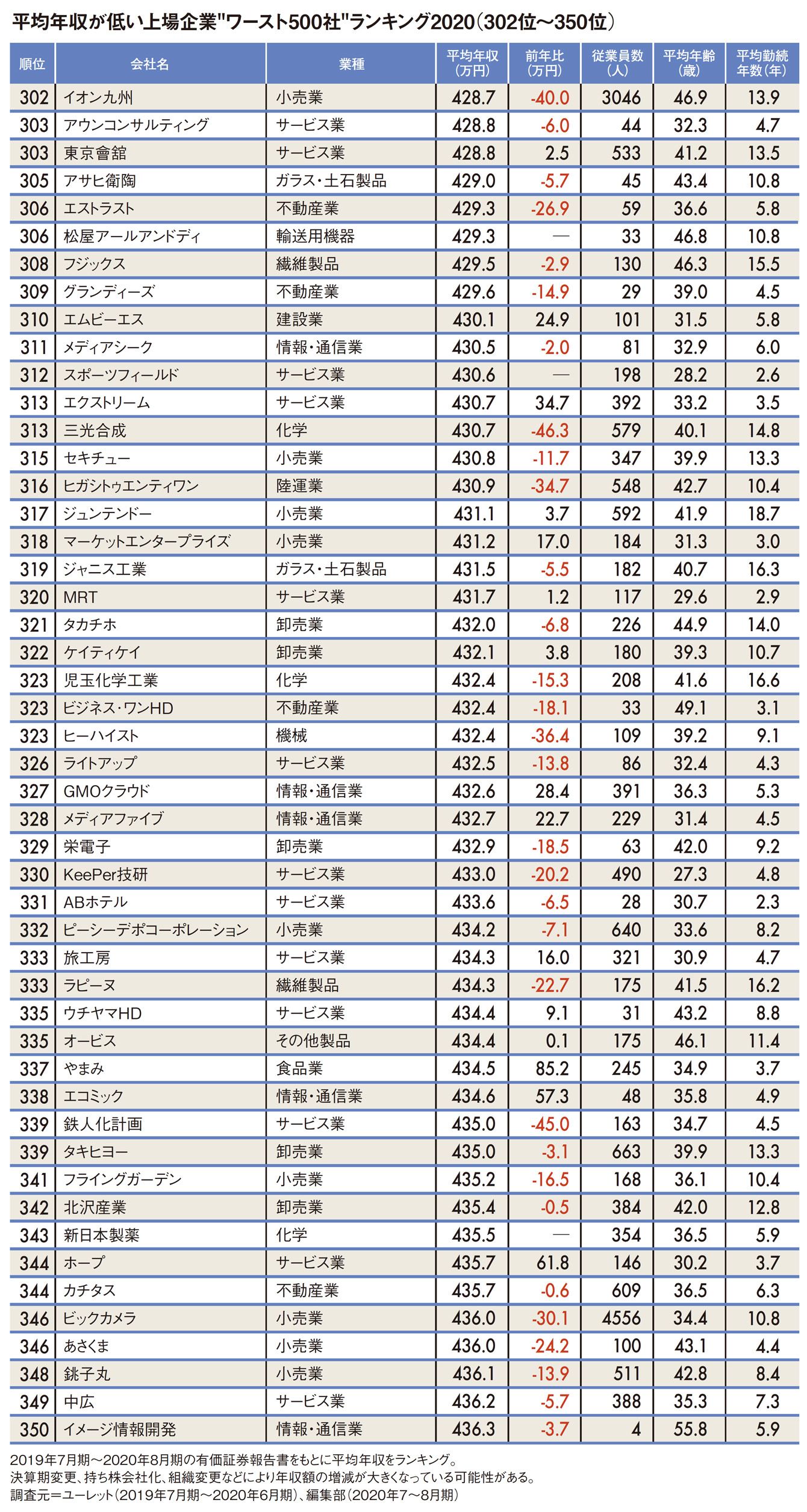 「1位はメガネ小売り」平均年収が低いワースト500社ランキング2020