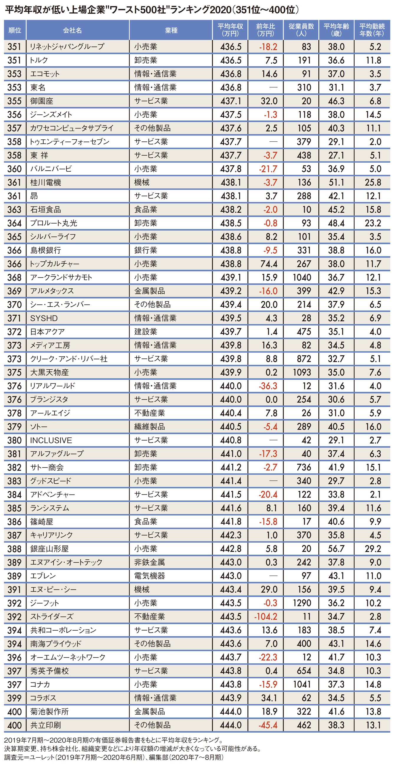 「1位はメガネ小売り」平均年収が低いワースト500社ランキング2020
