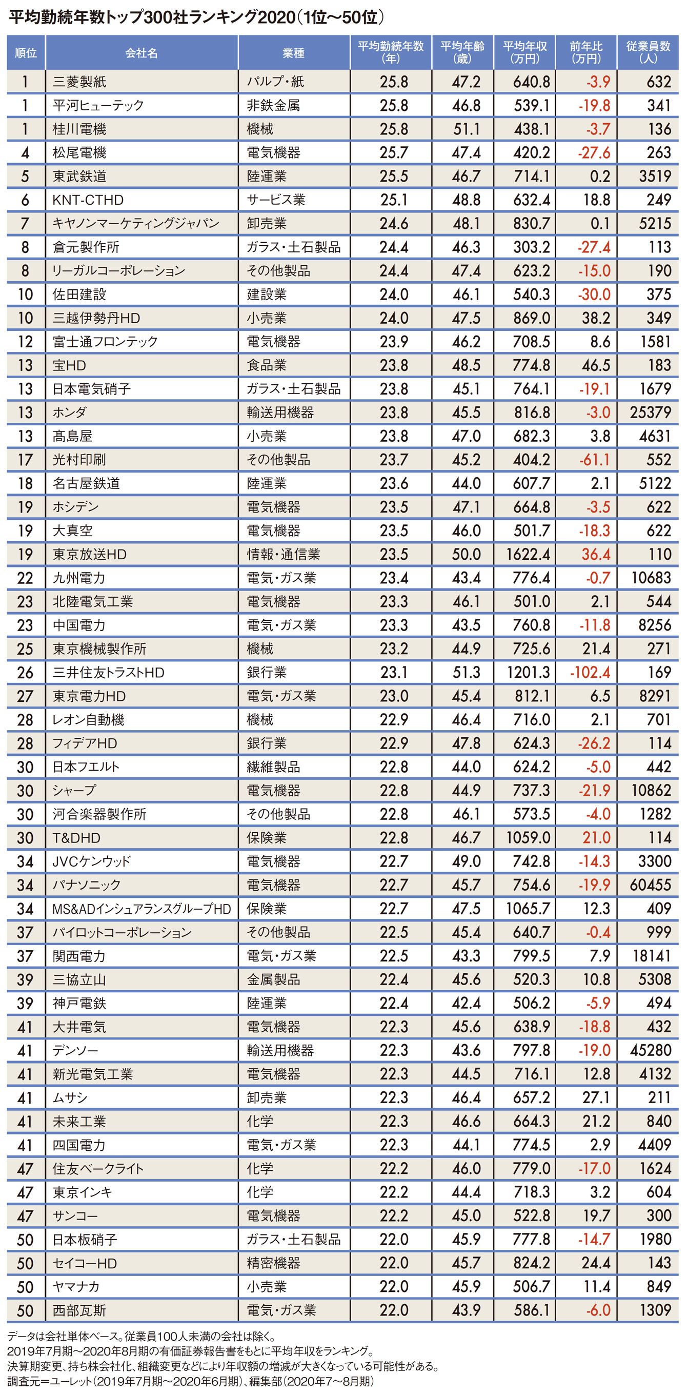 「1位は三菱製紙の25年超」平均勤続年数トップ300社ランキング2020