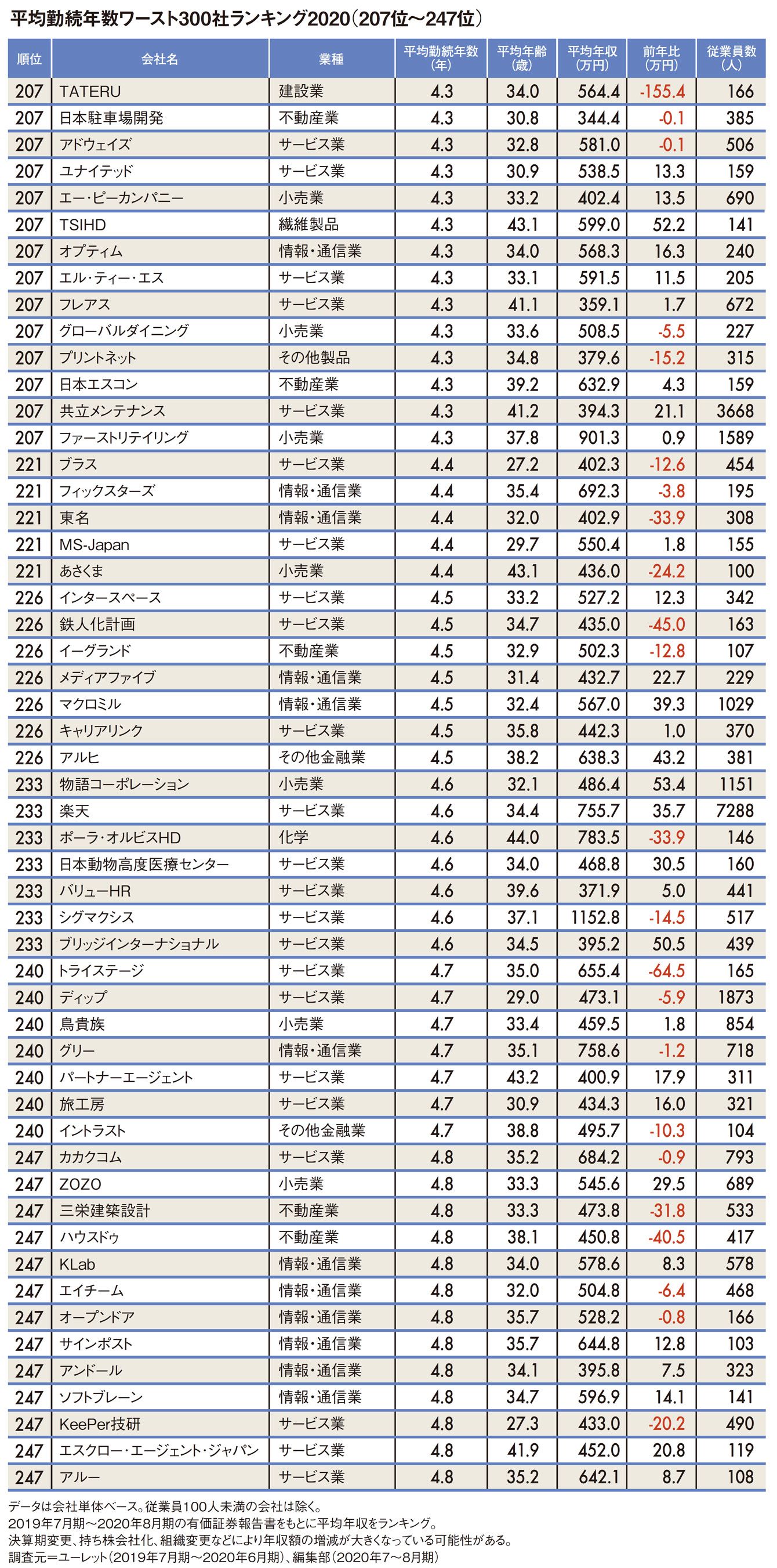 「1位は0.7年」平均勤続年数ワースト300社ランキング2020