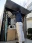 作業中の様子。安全を確保するため靴の上からビニールをかぶせている。