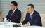 デジタル・ガバメント閣僚会議で発言する菅義偉首相(右)。左は平井卓也デジタル改革担当相=2020年12月21日、首相官邸