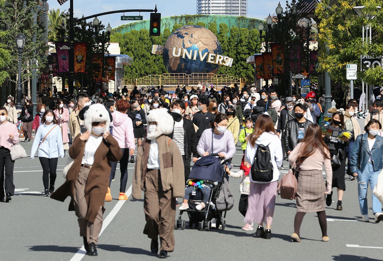 「Go Toイベント」事業の初日、多くの来場者でにぎわうユニバーサル・スタジオ・ジャパン(USJ)=2020年11月4日、大阪市此花区