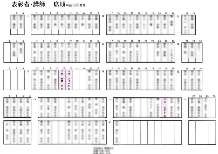 東京専門学校卒業式の座席見取り図。二村さんの右隣の小池いづみさん、その後列「へ24番」がもうひとりの死亡者・小林桂子さん。