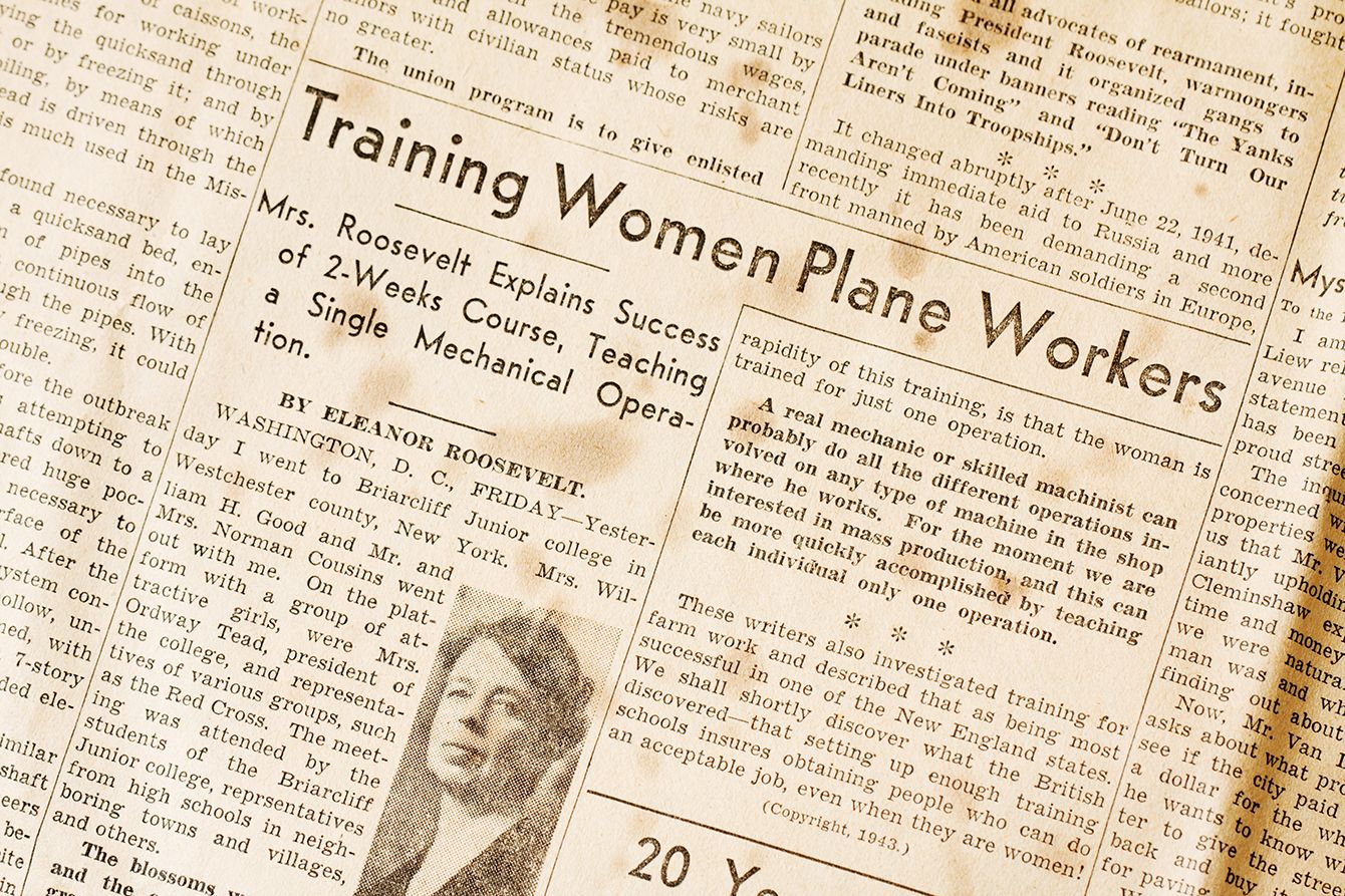 1943年3月、当時のファーストレディ、エレノア・ルーズベルトがアイオワ州の新聞デモイン・トリビューンに寄せた、女性のエンジニア教育に関する記事