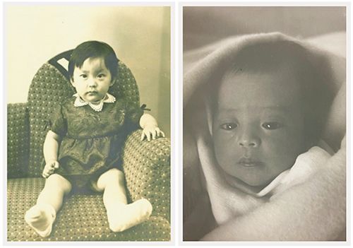 (左)2歳ごろ。幼いころから母は厳しかった。飼っていた雑種犬ポニーは、おおたわさんが母にたたかれそうになると止めに入ってくれた。(右)生まれたとき両親は籍を入れておらず、嫡出子として認められていなかった。