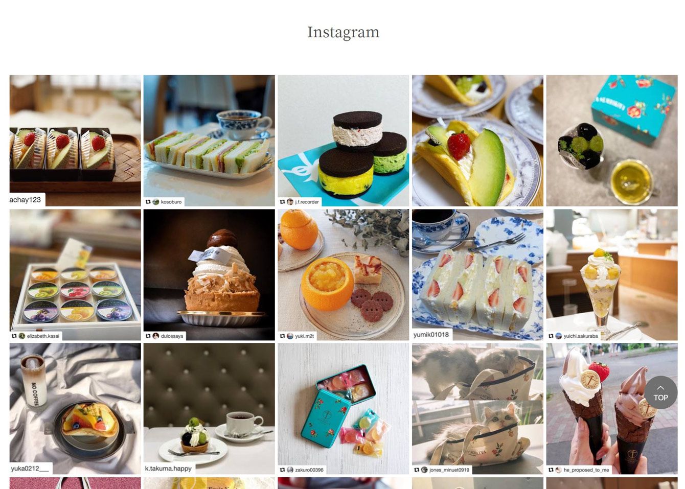 銀座千疋屋公式サイトにはインスタグラムの画像が並ぶ