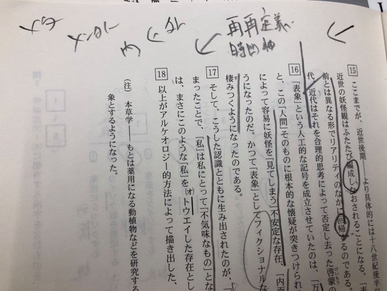 妖怪と格闘した跡が残る筆者の「国語」の問題用紙