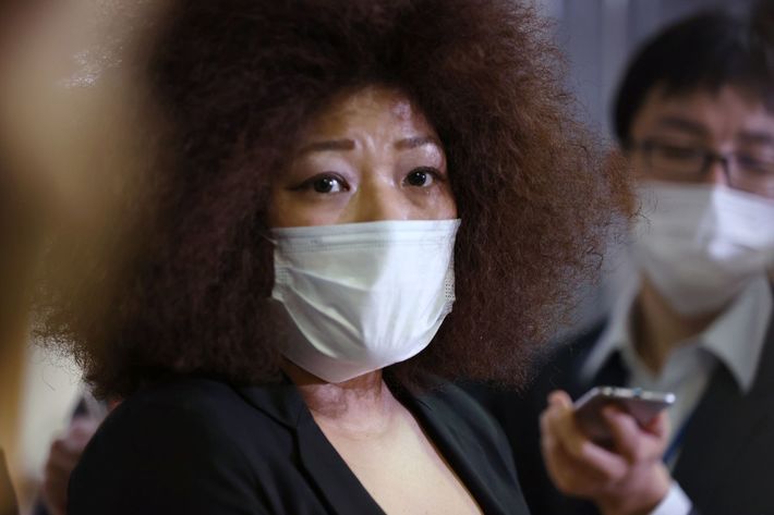 ネット上で誹謗中傷された後に亡くなった女子プロレスラー・木村花さん(当時22歳)の母親の木村響子さん=2020年8月6日、東京・永田町の自民党本部